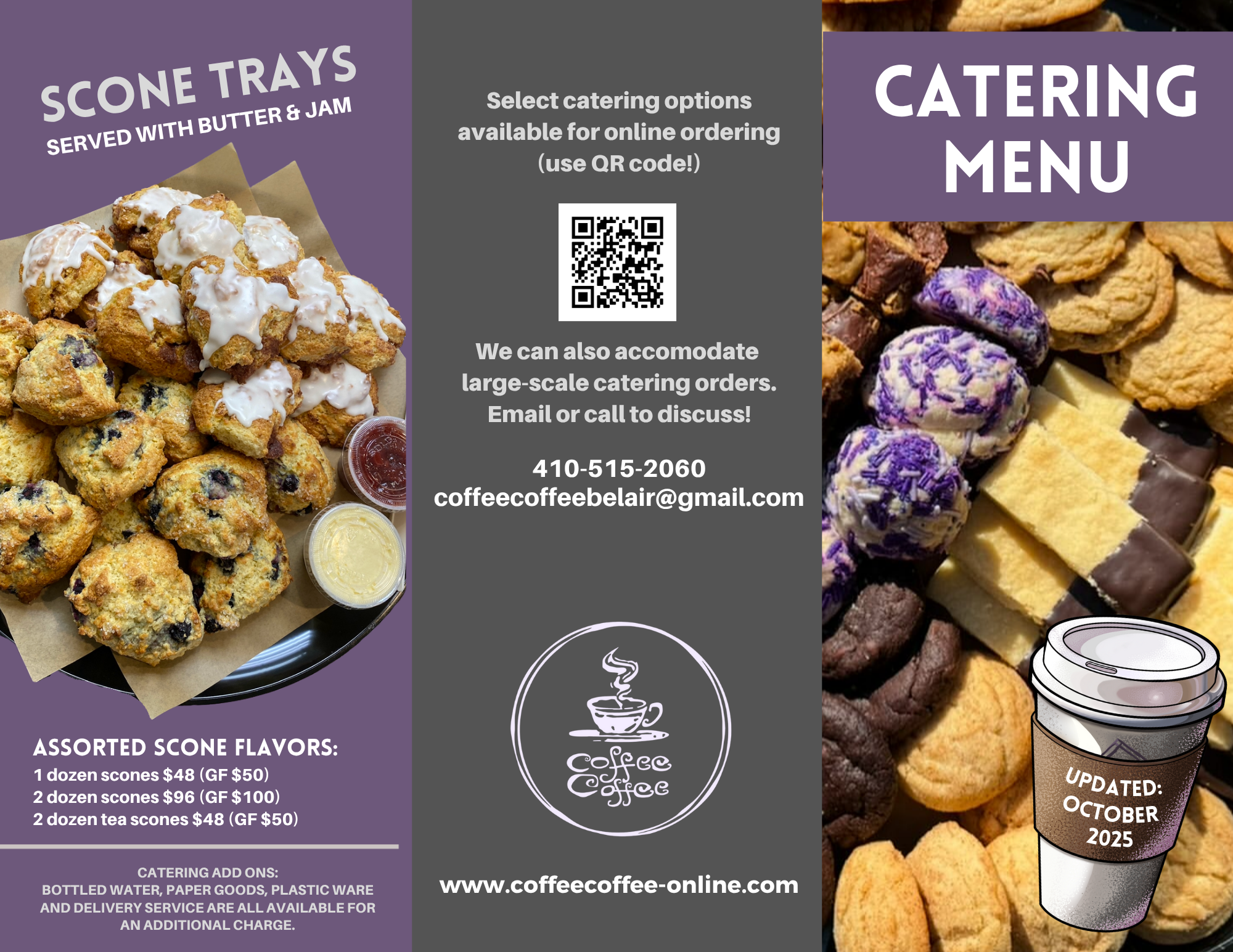 Call 410-515-2060 or email coffeecoffeebelair@gmail.com to order